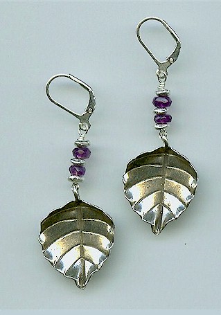 Silver leaves dangle from a waterfall of faceted amethyst and silver.